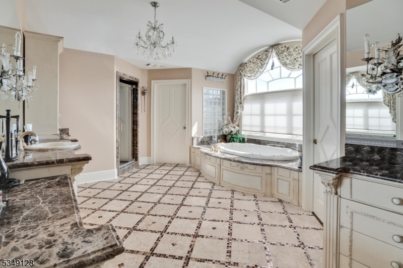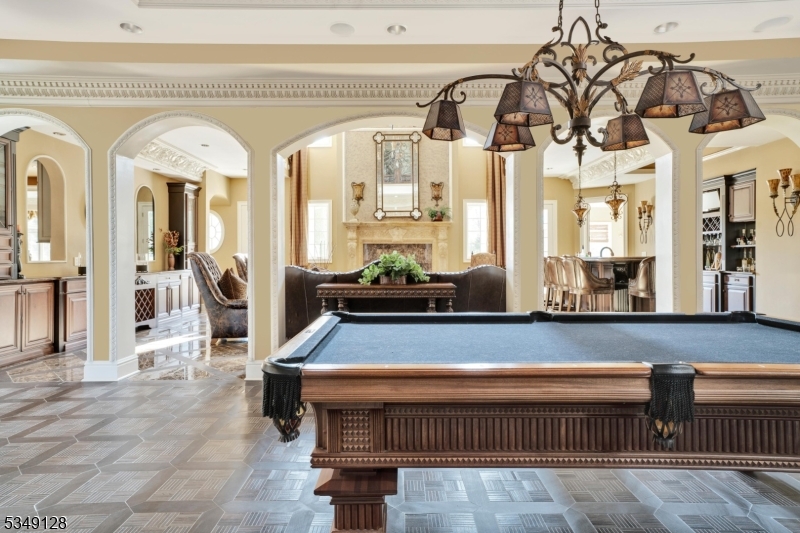 Once in a lifetime opportunity to own one of North Caldwell's most iconic estates. 11 Rickland Drive is a magnificent custom home built in 2009 with over 11,000 square feet of luxurious living across 30 thoughtfully designed rooms. No expense or detail was overlooked. Grand in scale yet warm in ambiance, this residence is perfectly suited for large-scale entertaining or intimate gatherings. The home offers seven bedrooms, each with a private ensuite, along with a total of nine full and two half baths. A dramatic dual staircase, soaring ceilings, arched passageways and rich millwork set the tone, while designer finishes and multiple interior balconies add elegance throughout. The main level features a gourmet kitchen with a breakfast room and an oversized island, formal living and dining rooms, a vaulted sunroom, a richly appointed office with a fireplace, a great room with a balcony overlook, a cabana room with a wood-burning fireplace and full bath and a state-of-the-art theater. An elevator services all three levels. Upstairs, the primary suite includes a sitting room, dressing room, double walk-in closets, two water closets, an adjoining den with kitchenette and a private balcony. The lower level offers a dance floor, bar, kitchen, gym, spa, arcade, lounge areas and guest suite. Outside, 2.37 acres unfold into a resort-style setting with a heated pool, water slide, waterfall, covered bar, firepit, patios and manicured grounds.