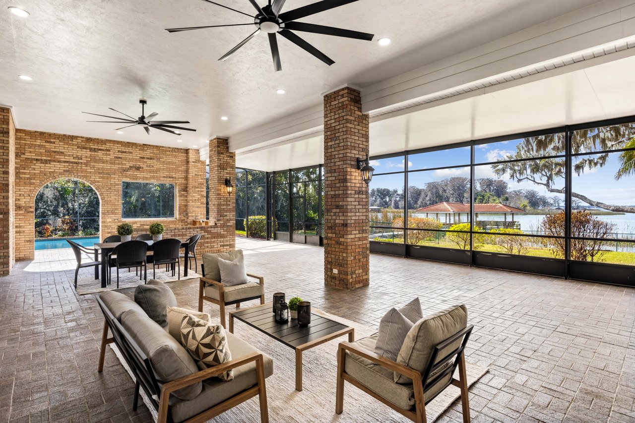 Exquisitely renovated and masterfully reimagined, this direct Lake Dora estate represents a truly rare acquisition opportunity along the celebrated Harris Chain of Lakes -- a turnkey waterfront residence where design excellence and lifestyle prestige converge in perfect harmony. From the moment of arrival, an extraordinary way of life unfolds both on the water and on land, where sailboat regattas glide across the horizon, championship fishing awaits offshore, and sunset cruises begin from your private boathouse just steps from the door. Festivals, boutique shopping, and acclaimed dining in historic Mount Dora are equally within effortless reach, creating a seamless blend of leisure, culture, and recreation. Privately situated on an expansive 1.17-acre cul de sac homesite, the setting ensures a level of exclusivity rarely found along the lakefront. Inside, soaring twelve-to-fourteen-foot ceilings crown the principal living spaces, unveiling a grand open layout designed for elevated entertaining and everyday comfort alike. Every surface reflects the home's comprehensive renovation, where curated finishes and jaw-dropping decor create a visual experience as impressive as the surrounding water views. Spanning more than 4,700 square feet of living space, the residence is further enhanced by an oversized three-car garage, an impressively sized pool, and an extraordinary 1,000 square foot terrace overlooking the pool, boathouse, and shimmering lake beyond -- soon to be elevated further by the addition of a bespoke summer kitchen, designed to transform alfresco dining and sunset gatherings into effortless waterfront entertaining. Life on Lake Dora unfolds at a gentler, more inspired rhythm. Mornings begin with coffee on the dock as mist rises from glassy waters; afternoons invite boating, paddleboarding, and cruising the scenic shorelines of the Chain; evenings conclude beneath painted skies as golden sunsets reflect endlessly across the horizon. Yet the lifestyle extends far beyond the shoreline. Moments away, Mount Dora enriches daily life with its storybook charm and vibrant social energy. Brick-lined streets lead to art galleries, antique markets, wine walks, boat shows, and year-round festivals that animate the town with celebration and sophistication. Waterfront restaurants, boutique cafes, and curated shops create an atmosphere both relaxed and refined -- a rare pairing that defines this beloved lakefront enclave. For the discerning buyer, a masterfully renovated residence of this scale and presence on Lake Dora is not simply a home, but a legacy offering -- an opportunity to secure move-in-ready luxury within one of Central Florida's most treasured waterfront corridors, where the Harris Chain lifestyle delivers endless miles of adventure, beauty, and timeless lakefront living.