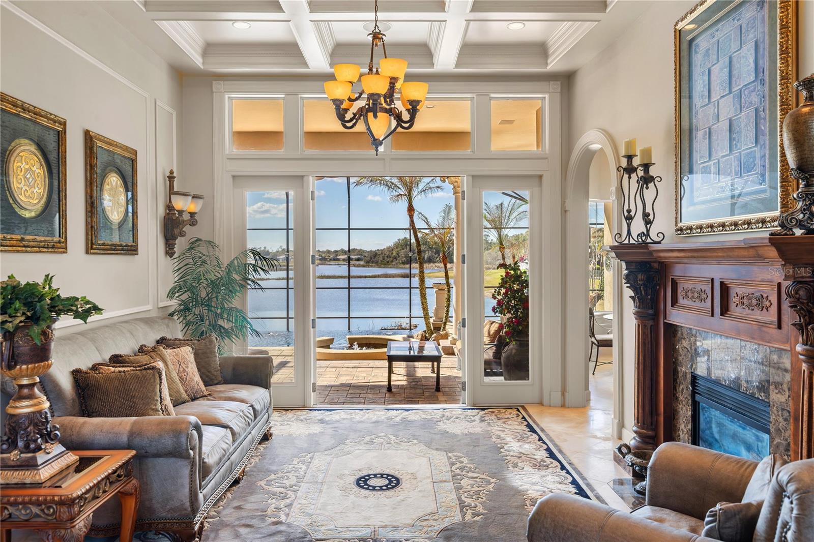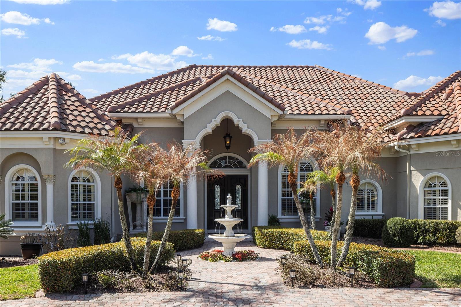 Perfectly positioned on the very first hand-selected homesite within the exclusive Reserve enclave of Heathrow, 1489 Langham Terrace commands one of the most extraordinary vantage points overlooking Lake Irish. From this elevated setting, tranquil water views alive with native wildlife stretch across the horizon, culminating each evening in breathtaking sunsets reflected across the lake. The setting is further elevated by a spectacular infinity-edge pool where water appears to merge seamlessly with the lake beyond. Gas flame pits and a waterfall pergola create a captivating resort atmosphere ideal for unforgettable evenings of outdoor entertaining. Spanning an impressive 5,318 square feet of living space, this distinguished estate represents one of the largest residences in The Reserve and occupies what is widely considered the community's most desirable homesite. Offered for sale for the very first time, the property presents a rare opportunity to own a signature residence in one of Central Florida's most sought-after guard-gated communities. Located along the northern corridor of Heathrow, residents enjoy effortless access to major thoroughfares, Lake Sawyer Park, and the renowned Heathrow Golf and Country Club. Membership opportunities range from social and racquet sports to championship golf, including the exceptional dual membership privileges with the Legacy Club at Alaqua Lakes, providing access to 36 holes of premier golf. Equally compelling is the home's placement within the highly regarded school zones of Heathrow Elementary School and Markham Woods Middle School, adding another dimension of desirability to this extraordinary location. Crafted by Hillcrest Homes, the residence immediately impresses with a circular brick paver drive, lush landscaping, and a spacious side-entry garage that complements the home's refined architectural presence. A welcoming fountain greets guests, while the grand entry reveals sweeping views of the pool and Lake Irish beyond. Inside, timeless travertine flooring, graceful arches, custom millwork, and curated materials create an atmosphere of bespoke elegance throughout. The owner's wing serves as a private sanctuary, featuring a spacious bedroom crowned by illuminated tray ceilings, plantation shutters, dual walk-in closets, and a luxurious spa-inspired bath with soaring ceilings and a striking center jetted tub. At the heart of the home, the kitchen and family room blend seamlessly, highlighted by custom cabinetry and panoramic lake views that frame daily living with natural beauty. Upstairs, entertainment takes center stage in the expansive game room complete with a wet bar and a private balcony overlooking the water. A purpose-built home theater offers a true cinematic experience, while an adjacent lounge leads to a second primary suite appointed with a soothing steam shower, generous walk-in closet, and private study. Life in Lake Mary extends well beyond the gates of Heathrow. Residents enjoy convenient access to boutique shopping, acclaimed dining, and the charm of nearby historic Sanford. Major employment centers, regional hospitals, Orlando's renowned attractions, and Florida's beautiful beaches are all within easy reach. This is lakefront living elevated by privacy, prestige, and the extraordinary lifestyle that has made Heathrow one of Central Florida's most celebrated communities.