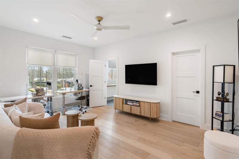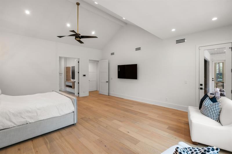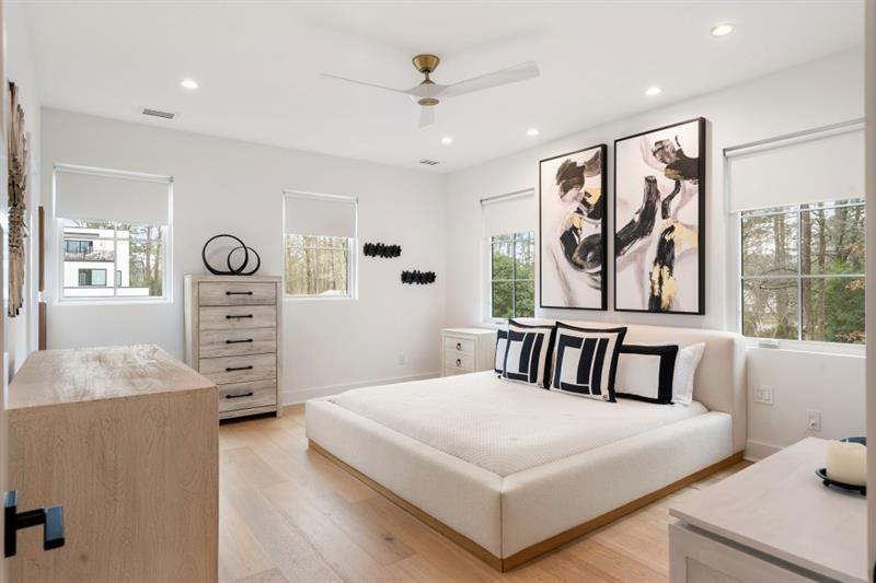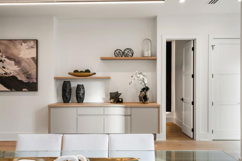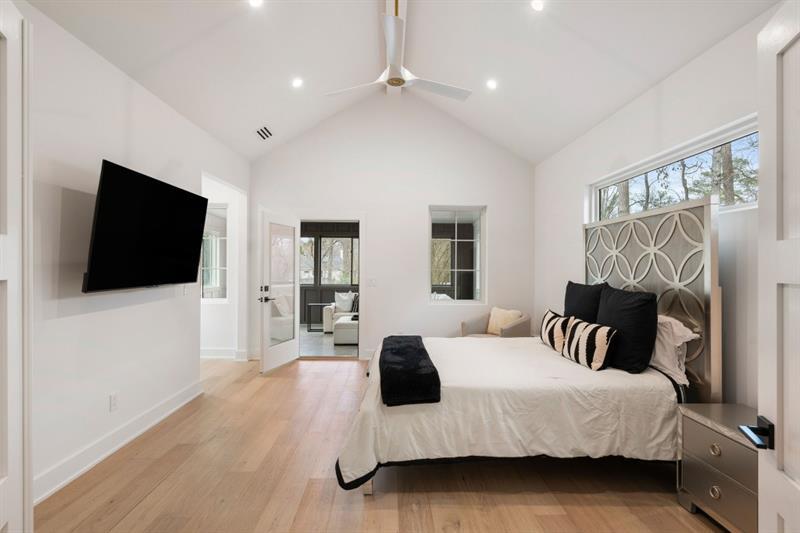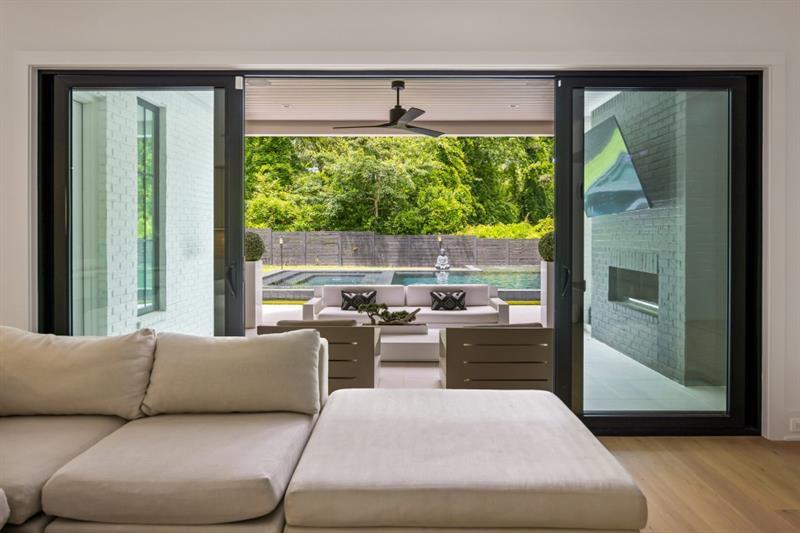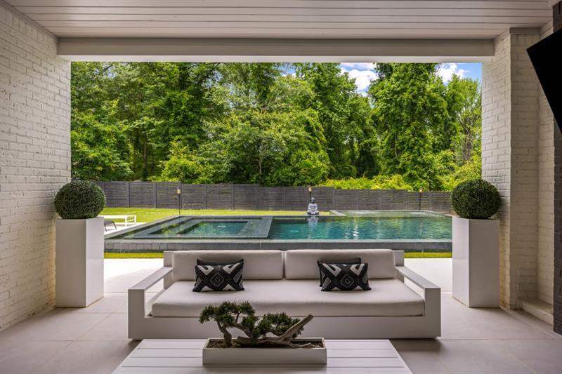 A triumph of modern design and craftsmanship, this distinguished modern residence in Alpharetta's coveted Garden District offers a seamless blend of luxury and resort-quality livability. Every element, from its striking architecture to its thoughtfully curated interiors, reflects an uncompromising commitment to quality and sophistication, all within moments of premier dining, shopping, and cultural destinations. A newly completed heated saltwater pool and raised spa, clad in black glass tile with a cascading waterfall, create a private resort-style retreat. A commanding fa ade, enhanced by precise landscaping and custom exterior lighting, introduces the home's luminous and flowing interiors. The two-story foyer, lined with wide-plank white oak flooring, leads to a series of spaces designed for both grand entertaining and intimate daily living. A private study with custom millwork offers a quiet retreat, while the formal dining room, anchored by a dramatic floor-to-ceiling glass wine display, sets an elegant stage for gatherings. At the center of the home, the chef's kitchen blends form and function with bespoke European-inspired cabinetry, waterfall quartz countertops, and a full suite of paneled Wolf and Sub-Zero appliances. An expansive island and adjacent butler's pantry, complete with a Miele coffee system, ensure effortless hosting. The adjoining great room, framed by an elegant fireplace with a custom surround, is bathed in natural light from a wall of sliding glass doors, seamlessly extending the living space to the fireside covered lanai. The primary suite, secluded on the main level, is a private sanctuary featuring vaulted ceilings, transom windows, and direct access to the lanai. Its spa-inspired bath is appointed with floating vanities, a soaking tub, an oversized glass shower, and a bespoke illuminated wardrobe system. Additional main-level amenities include a well-appointed mudroom, a designer laundry room with custom cabinetry, and a three-car garage with epoxy-finished flooring. Ascending the glass-railed staircase, the upper level reveals four generously scaled bedrooms, each offering distinct character. One, envisioned as a fashion atelier, boasts vaulted ceilings and clerestory windows, while another functions as an in-law or au pair suite, complete with a reading nook and a climate-controlled four-season lounge overlooking the estate-like grounds. Beyond the interiors, the outdoor spaces are designed for both relaxation and entertaining. The expansive terrace, finished with large-format tile, provides ample space for sunbathing, dining, and hosting against the backdrop of the stunning resort-style pool. Thoughtfully executed landscaping ensures privacy while enhancing the home's overall sense of tranquility. A rare offering in Downtown Alpharetta, this residence represents the pinnacle of contemporary luxury-where architectural precision, premier location, and an exceptional lifestyle converge in perfect harmony.