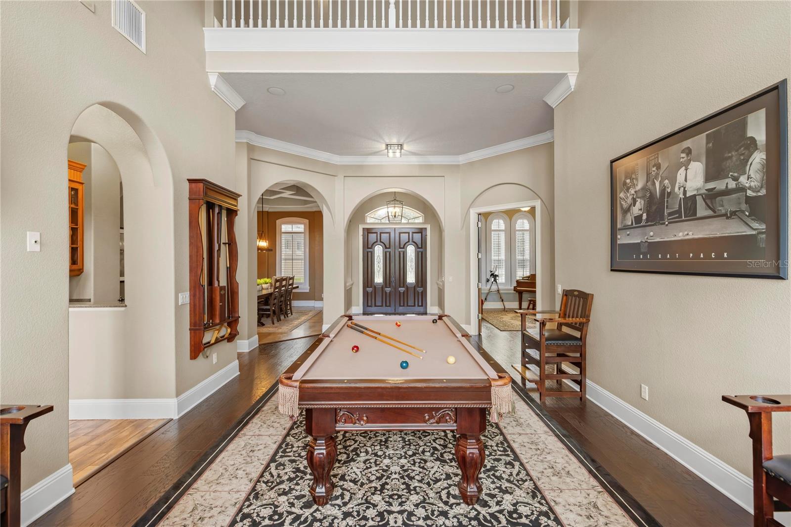 Experience refined living in the coveted, guard-gated community of Lake Markham Preserve, an exclusive community of only fifty-nine opulent residences. Poised on nearly two private acres, this 6,000-square-foot custom estate captures timeless elegance and luxury with captivating views of beautiful Lake Markham. A grand two-story design welcomes you with 24-foot ceilings, expansive windows, and exquisite architectural details including wood flooring, crown molding, and custom arches. The owner's suite is a serene retreat with breathtaking lake views, dual walk-in closets, and a spa-inspired bath with jetted tub and walk-in shower. Designed for entertaining, the chef's kitchen boasts gas cooking, dual sinks, and a large center island, while the formal dining room features a butler's pantry and wine closet. Upstairs, dual staircases lead to versatile lofts, a media room with wet bar, and three additional bedrooms, including one with a private balcony overlooking the pool and lake. Step outdoors to a two-story screened lanai with an oversized pool, spa, and summer kitchen, creating the ultimate resort-style oasis. Lake Markham Preserve is only minutes from the best of Sanford and Lake Mary, acclaimed medical centers, boutique shopping, and top-rated golf and country clubs, with effortless access to Orlando, Winter Park, and Central Florida's renowned attractions and beaches. This is luxury living at its finest. It's exclusive, elegant, and designed for those who demand the extraordinary.