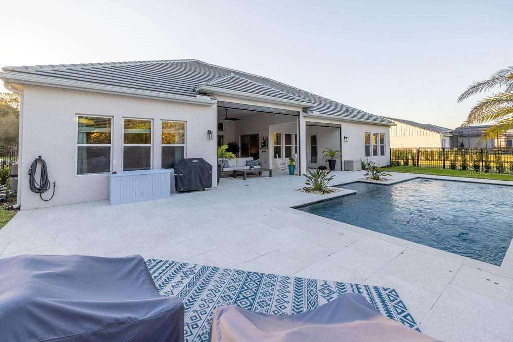 Welcome to the epitome of luxury living in the community of Lake Markham Landings! This stunning 2022 residence, surpassing the allure of new constructions, beckons you to experience the height of sophistication and comfort. Nestled on over half an acre of pristine land, this residence offers the perfect blend of elegance, functionality, and opulence. Boasting 4 generously sized bedrooms, each accompanied by its own en-suite bathroom, and an additional 1.5 bathrooms, this residence caters to both privacy and convenience. The inclusion of a dedicated office space ensures productivity, while a versatile "flex room" provides an opportunity for customization to suit your unique needs and desires. Prepare to be captivated by the meticulous updates and enhancements that adorn this home. Designer light fixtures cast a warm glow on the immaculate interiors, creating an ambiance that is both inviting and relaxing. The back patio is adorned with automatic screen enclosures, seamlessly blending the indoor and outdoor living spaces. A brand-new pool awaits, promising a refreshing escape and a focal point for entertainment. With over 4000 square feet of living space, this residence offers an abundance of room for both relaxation and social gatherings. The spacious layout ensures a seamless flow from room to room, creating an environment conducive to both daily living and grand celebrations. Beyond the luxurious features, this property is strategically located in the coveted Lake Markham corridor, offering a lifestyle surrounded by natural beauty and tranquility. This is more than just a home; it's an opportunity to embrace the essence of Lake Markham living. Don't miss the chance to make this exquisite property your own - a sanctuary where luxury, comfort, and style converge to create a residence that exceeds all expectations. Contact us today to schedule a private tour and experience the allure of this Lake Markham Landings masterpiece.