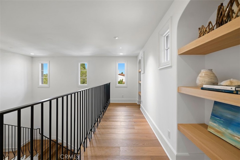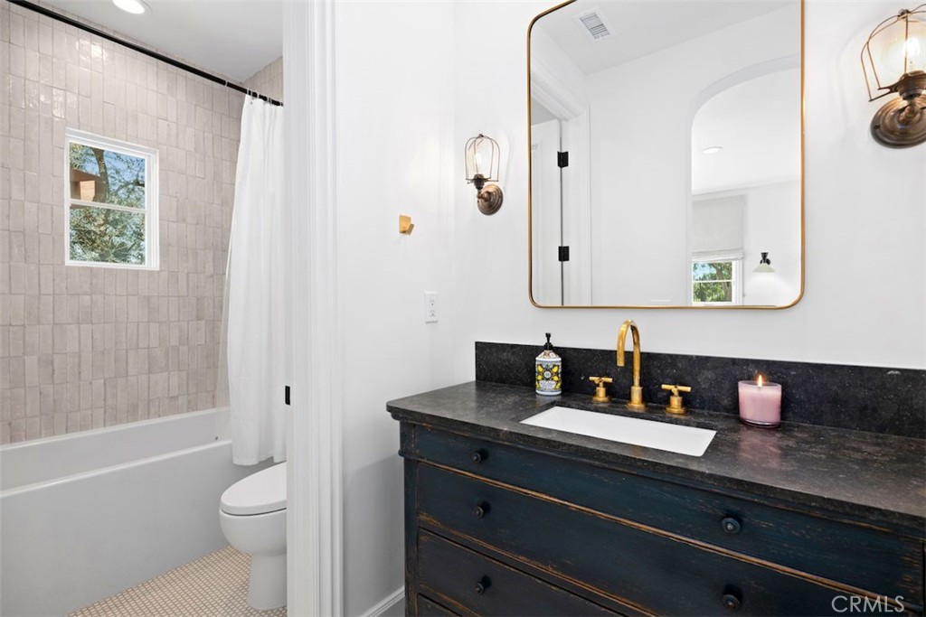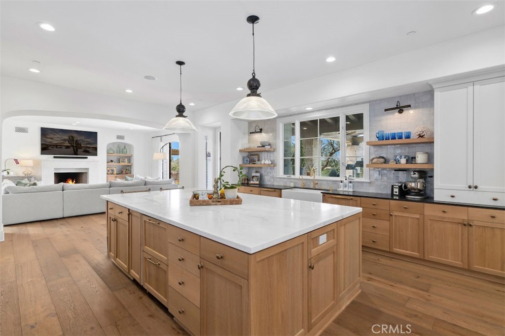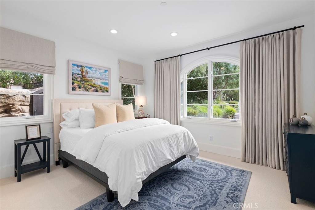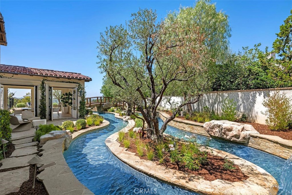 EXCEPTIONAL GOLF COURSE & CITY LIGHT VIEWS Reminiscent of new construction, this exquisitely renovated Master's Collection residence is ideally positioned at the end of a short cul-de-sac on an over half-acre lot, capturing breathtaking golf course, rolling hill, and sparkling city light views. The five-bedroom, five-and-one-half-bath home has been thoughtfully transformed with refined finishes throughout, including warm hardwood flooring, curated designer lighting, elegant tile work, and detailed millwork that elevate every space. Resort-inspired grounds create a private oasis designed for both grand-scale entertaining and everyday indulgence. The extraordinary pool experience rivals a luxury retreat, featuring an elevated spa, lazy river, grotto, and tranquil waterfall - offering moments of play, relaxation, or both. The chef's kitchen is a true centerpiece, appointed with top-tier appliances, bespoke cabinetry, and intentional design for both function and beauty. Adjacent living spaces provide seamless versatility: formal living and dining rooms open to a charming central courtyard through French doors; the family room and sunlit morning room frame the kitchen for effortless gatherings; and a custom-finished media lounge serves as a dramatic showpiece for elevated entertaining. The primary suite occupies its own expansive private wing on the second level. A spa-inspired bath anchors the retreat, complemented by dual walk-in closets - one currently configured as a private office. Additional highlights include a secondary bedroom wing with all ensuite accommodations, an attached guest casita with its own living room, and owned solar panels. Residents of Shady Canyon enjoy world-class amenities including two 24-hour guard gates, scenic walking and cycling trails, pickleball and tennis courts, a sports court, swim facilities, playground, and more - all moments from award-winning schools, UCI, and premier shopping and dining destinations.