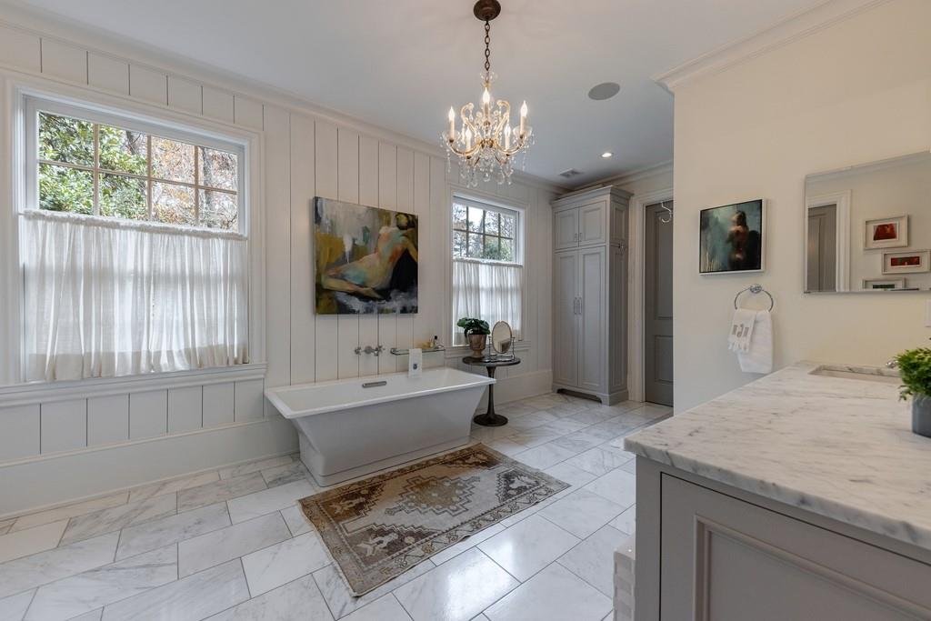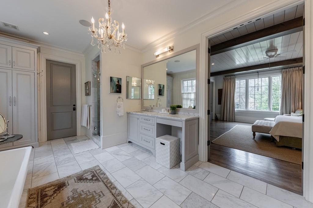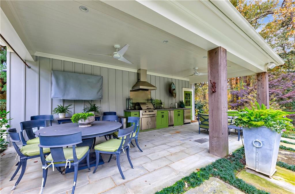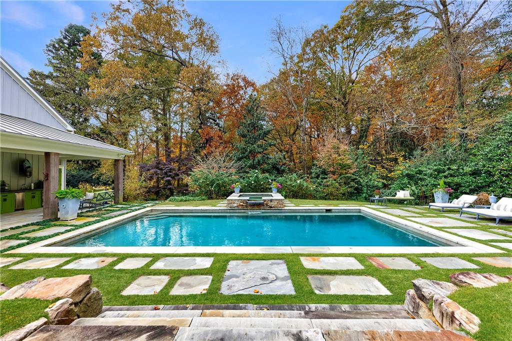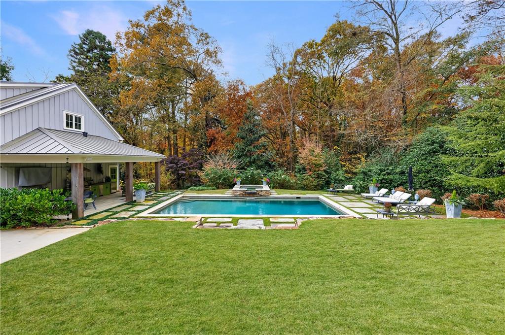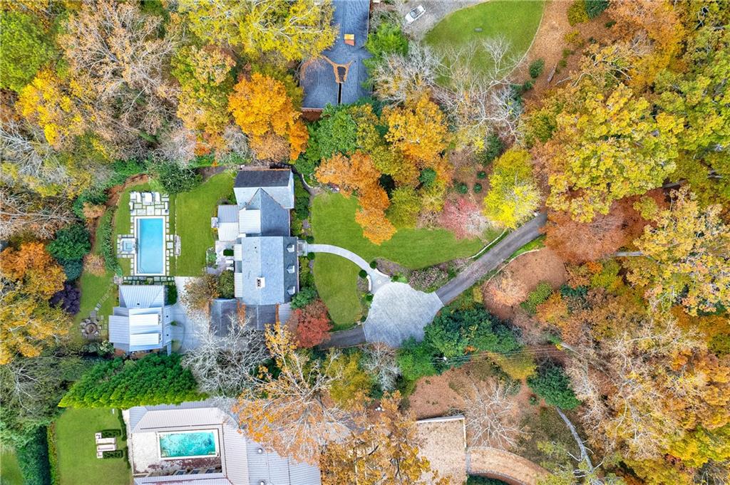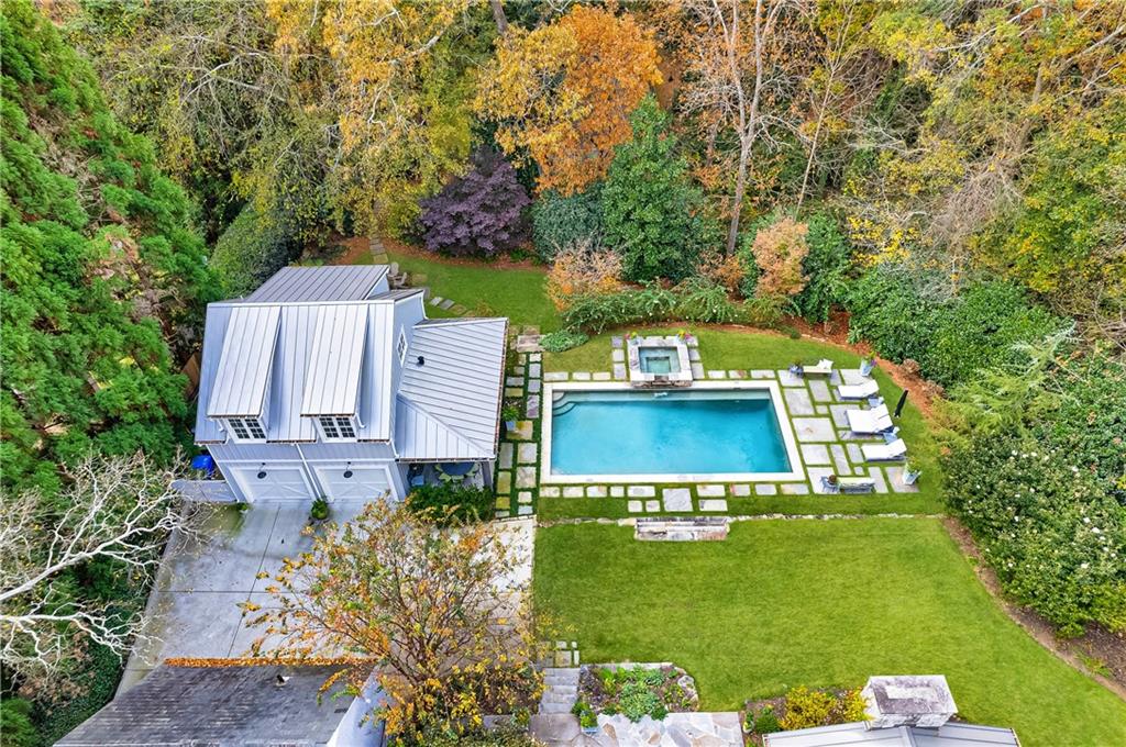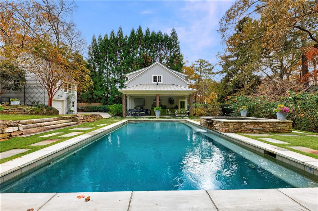 Truly charming, this original Clement J. Ford-designed home sits on a private 2+- acre retreat, offering timeless architecture paired with modern luxury. Warm architectural details such as shiplap walls, exposed wood beams, and iron windows blend seamlessly with modern upgrades, preserving the character of this beautiful older home while elevating it with today's luxury finishes. Thoughtfully renovated by David Siegel, the residence features expansive living spaces on the main level, including living room, den, dining room, light filled kitchen that opens to the breakfast area and a spacious primary suite conveniently located on the main floor. There is also a private guest suite on main with an e-suite bath. Upper level staricase leads to an open bonus room, perfect for an office, kid's play area, there are three spacious bedrooms with 3 full baths. The current owners have further enhanced the property with the addition of a detached two-car garage complete with finished space above--ideal for a guest suite, office, or studio. Outdoor living is exceptional, highlighted by a resort-style pool, outdoor kitchen, covered porch, and a private tennis court--creating the perfect setting for entertaining and everyday enjoyment. Set far back from the street behind a double-gated driveway, the home offers both privacy and abundant parking. A rare opportunity to own a thoughtfully updated classic with space, privacy, and exceptional amenities.