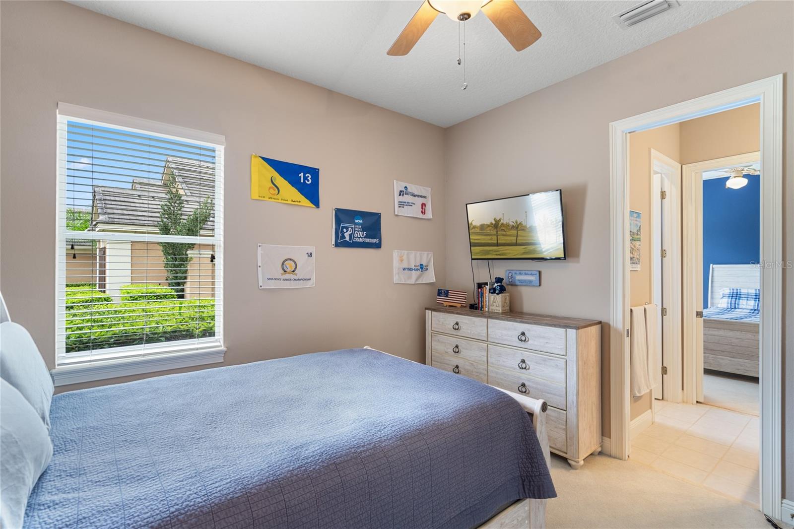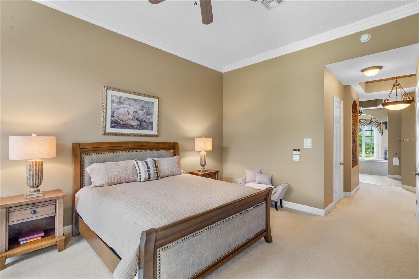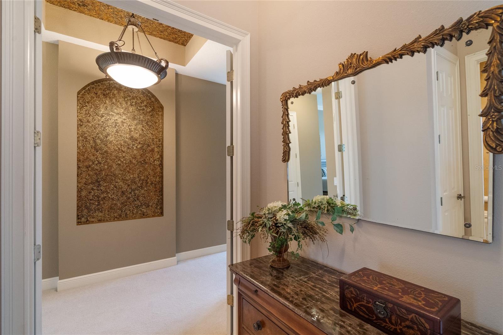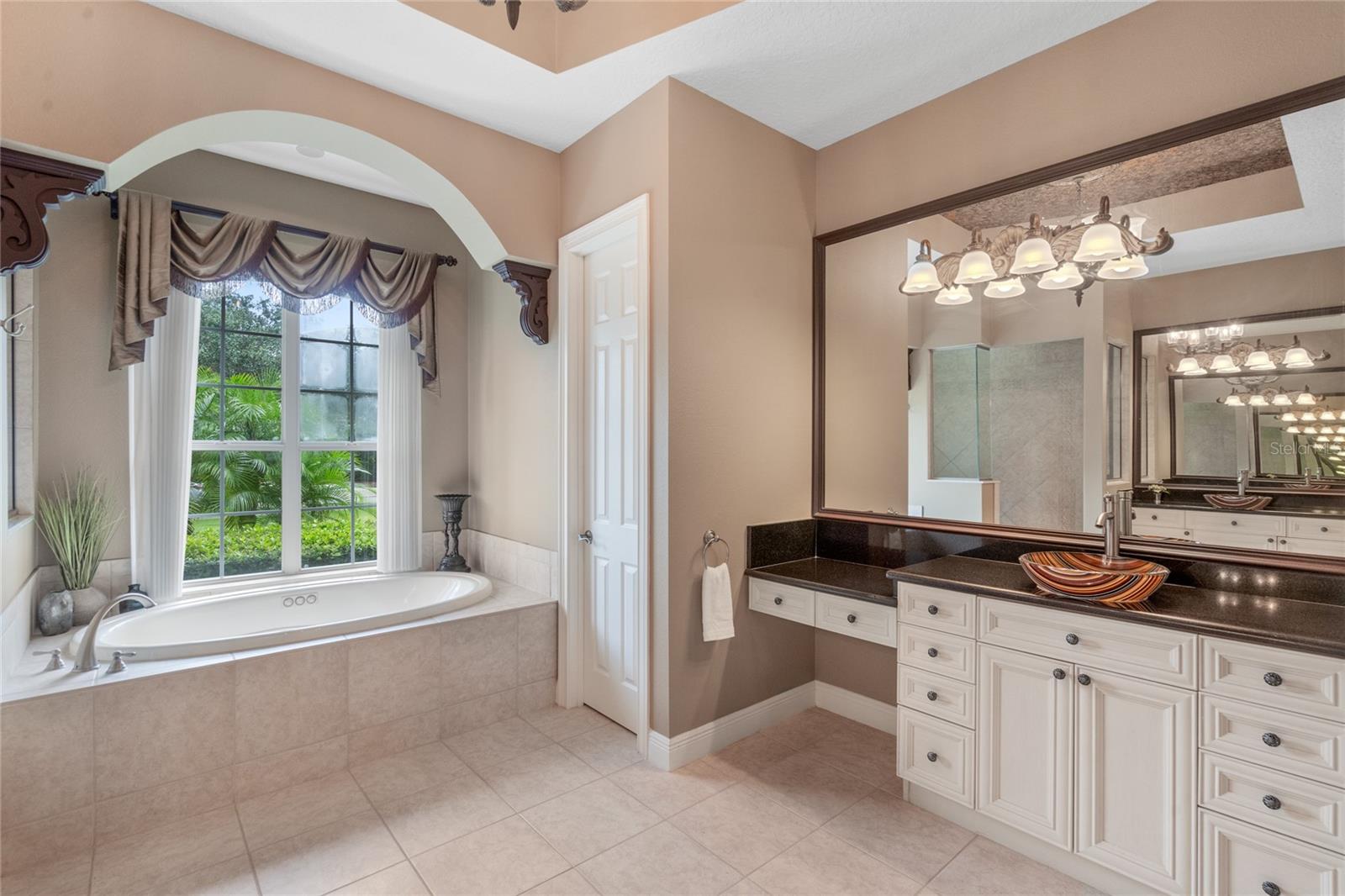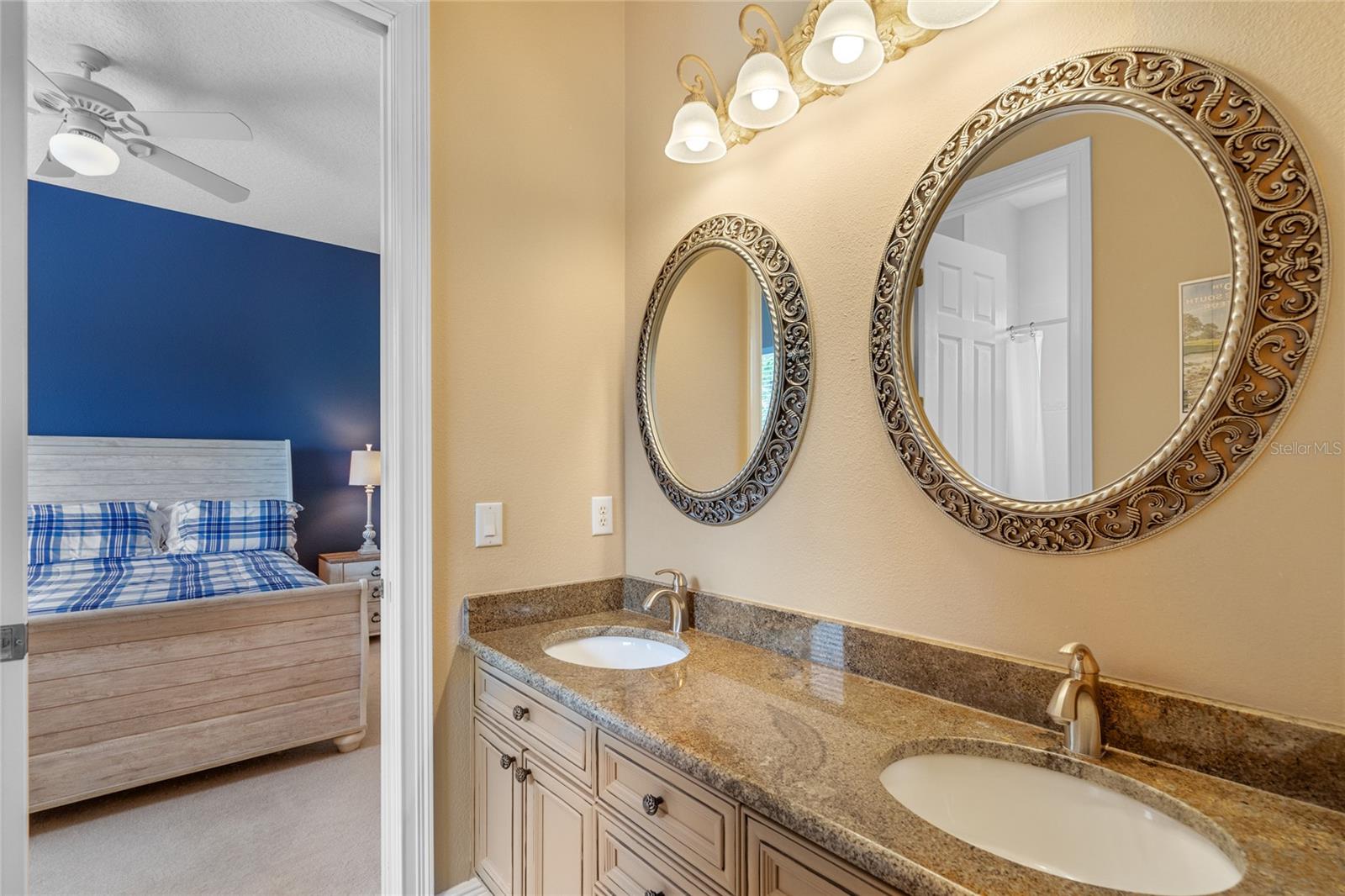 Nestled in the heart of Alaqua Lakes, an exclusive 24/7 guard gated community, this one-story home is on the Legacy/Heathrow Golf Course. The "Capistrano" model luxury home is situated directly on the 4th Fairway, Par 5 of the Legacy/Heathrow Golf Course. This home features spectacular unobstructed golf and lake views. This truly spectacular and unique one-story 3,894 square foot home boasts four bedrooms and four baths in an open floor plan, including a bonus room and office with a custom built-in desk. This home is unique and special due to its golf and water views. This property has been meticulously maintained with multiple upgrades and replacements over the years including a built-in Kitchen Aid Refrigerator, HVAC, Noritz tankless water heater, Jandy remote control for pool and spa, pool pump, back yard fencing, and much more. Upgraded finishes include a gourmet chef's kitchen, natural gas appliances, high ceilings, polished travertine flooring, custom cabinetry, exquisite granite counters in all bathrooms and kitchen, light fixtures, precast stone fireplace, and oversized windows. The primary bedroom and bathroom have been updated and upgraded, offering everything a buyer would expect in a luxury home of this magnitude. Insulation in the attic reduces electric bills, all bedrooms have walk-in closets, and this home includes a backup generator. The pool was resurfaced with PebbleTech in 2023. The outside area of this home is truly an entertainer's dream, with a resort-style heated pool and heated spa with water features and brick paver decking, all fenced in for privacy, perfect for enjoying gorgeous sunsets.