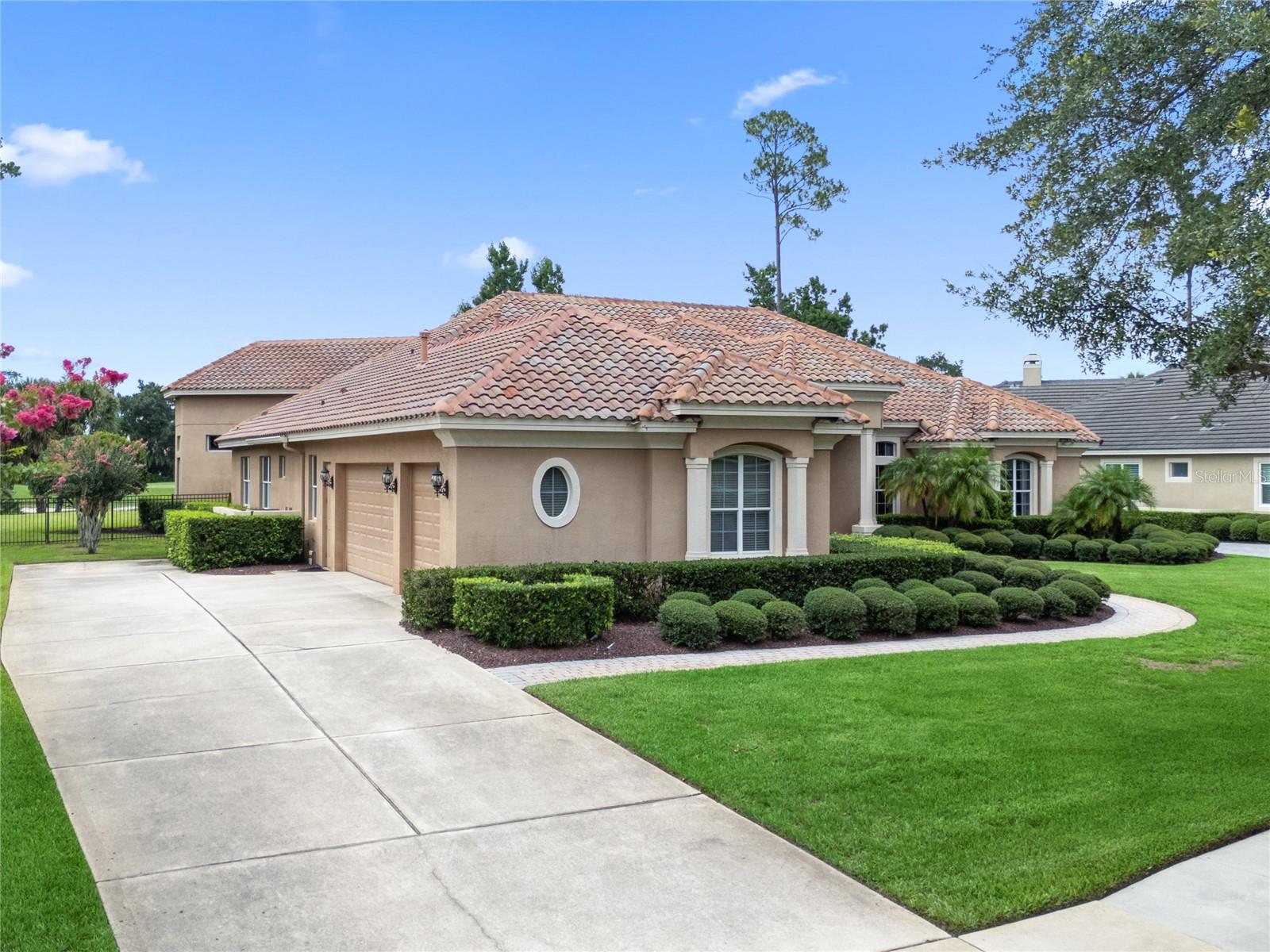 Nestled in the heart of Alaqua Lakes, an exclusive 24/7 guard gated community, this one-story home is on the Legacy/Heathrow Golf Course. The "Capistrano" model luxury home is situated directly on the 4th Fairway, Par 5 of the Legacy/Heathrow Golf Course. This home features spectacular unobstruct...