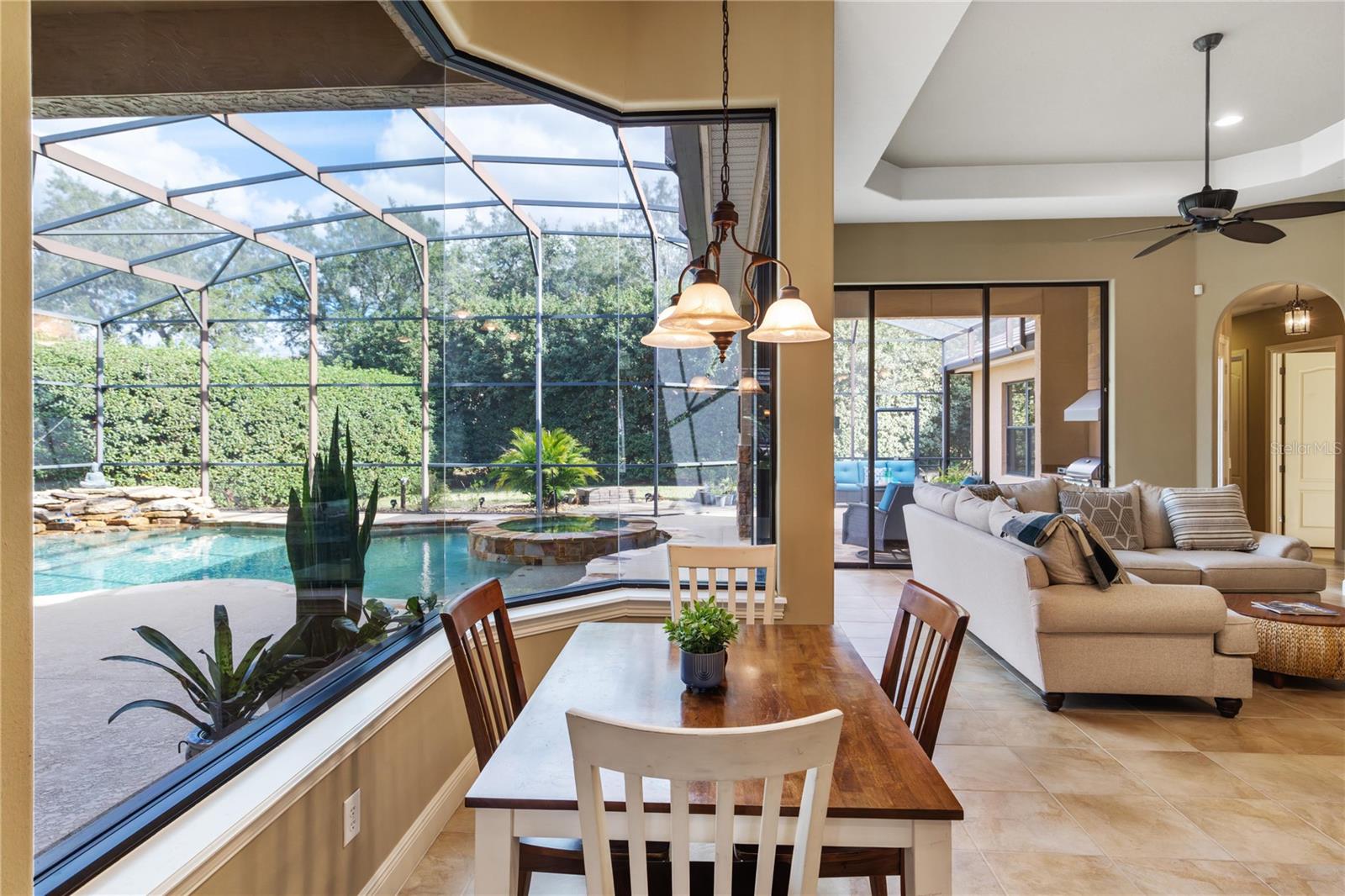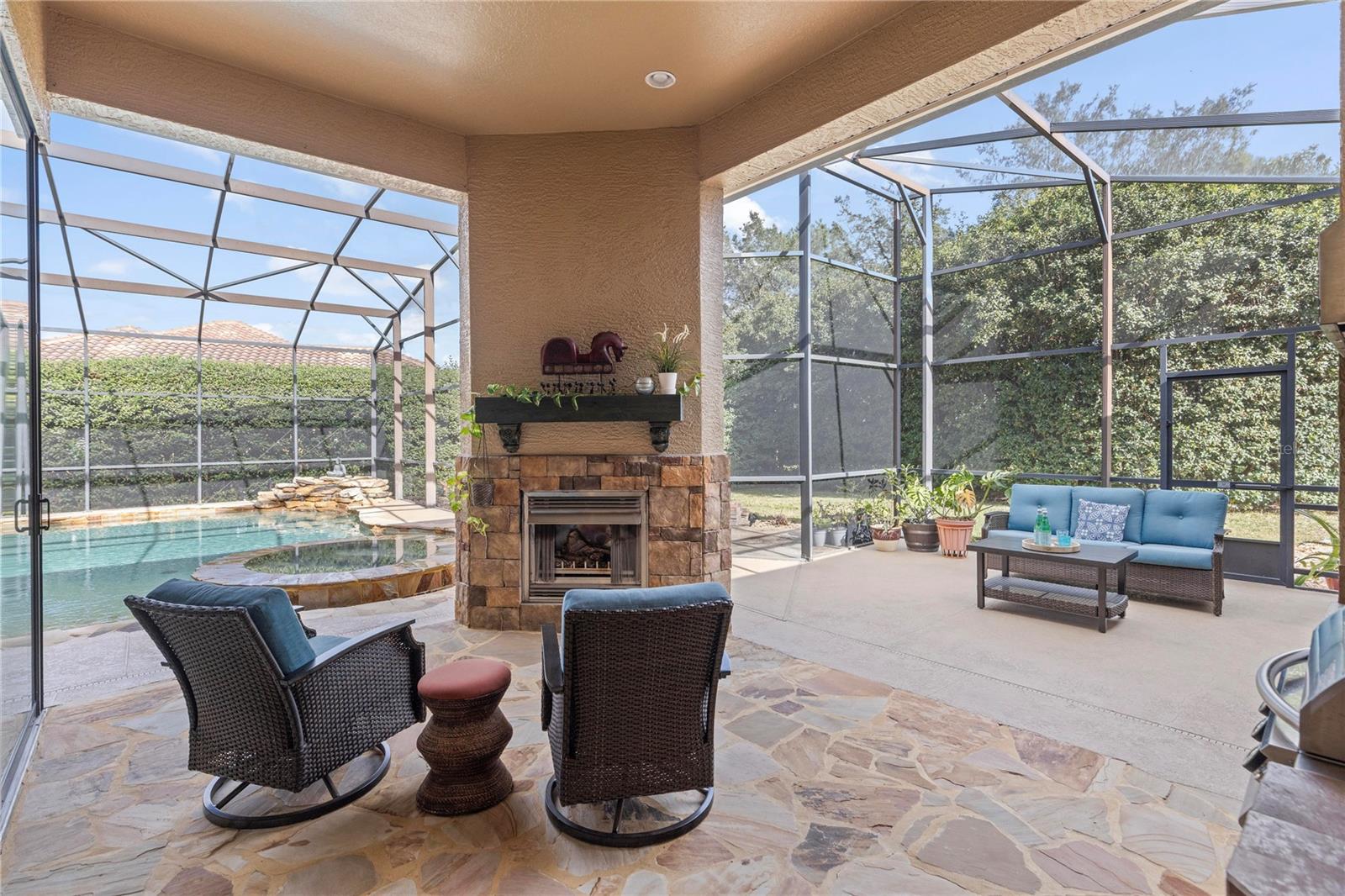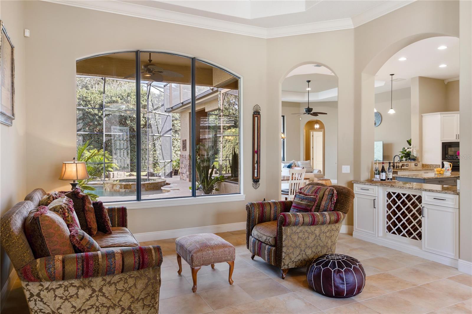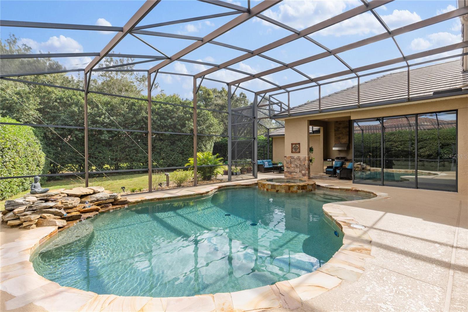 Welcome to Lake Forest, a resort-class gated community where residents enjoy the complementary amenities of a 55-acre lake with two fishing piers, a lakeside 10,000-square-foot clubhouse offering fitness, Junior Olympic-size swimming pool, beach volleyball, a park and playground, plus an incredible social committee bringing a calendar full of activities for all ages. This custom home spans 3,483 square feet of living space and features a three-way split plan including four bedrooms, an office, a game room/possible fifth bedroom, and expansive main living areas with tall ceilings and large windows. Upon entering the impressive lead-glass entry doors, the spacious and open floor plan expands across multiple spaces, all while introducing the alfresco lifestyle of the lanai, pool, and summer kitchen with fireplace. The spacious, light and bright kitchen unfolds into the family room featuring floor-to-ceiling pocket sliding doors inviting in the incredible stone-wrapped pool views and outdoor lifestyle this home was designed for. Just past the family room is the game room, which could easily become a guest suite thanks to direct bath access. The primary suite is an oasis all its own, enjoying tall ceilings and large windows, an impressive walk-in closet complete with a built-in storage system and a spacious bath featuring luxuries of a walk-in shower with multiple shower heads, a large soaking tub and dual vanities offering expansive granite counter space. Bedrooms two and three are on the opposite side of the home and share a Jack-and-Jill bath while bedroom four enjoys private access to the bath shared with the bonus room. The outdoor living spaces take advantage of privacy while maintaining direct views of the conservation area. The new owners will admire the wildlife beyond the screen enclosure including deer, hawks, wild turkey and more. Inside the screen enclosure are ample entertaining fun spots of a built-in summer kitchen, a gas fireplace, and of course the sparkling blue pool and spa to complete the desirable Florida lifestyle. An oversized three-car garage and manicured lot complete this incredible home. In addition to the 24-hour guarded gate, Lake Forest residents enjoy a newly updated clubhouse with fitness gym, Junior Olympic-size pool, tennis and pickleball courts, basketball, beach volleyball, 55-acre lake, lots of activities and neighborhood clubs for all ages. Ideally just moments from Interstate 4/State Road 417 and all Central Florida have to offer. Room Feature: Linen Closet In Bath (Bedroom 2). Room Feature: Linen Closet In Bath (Bedroom 3).