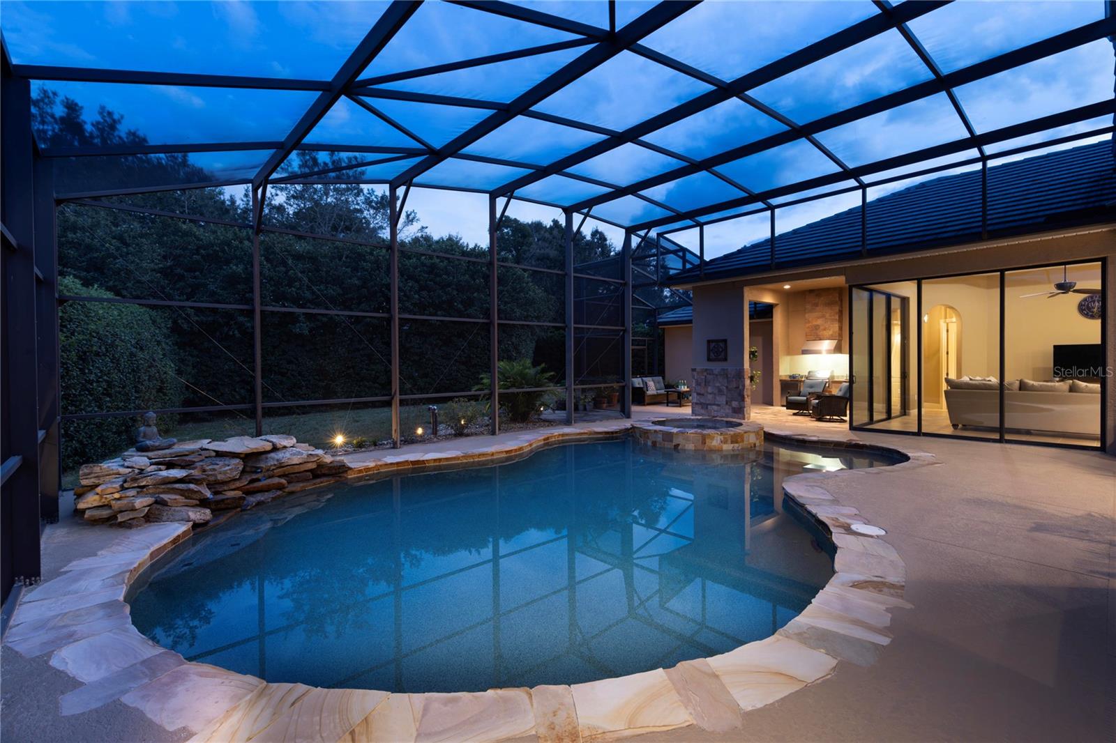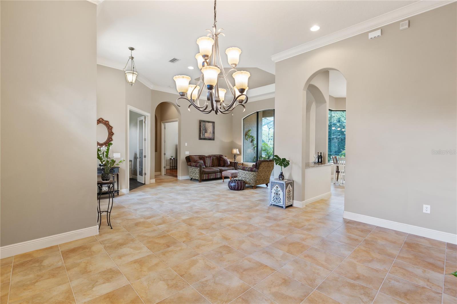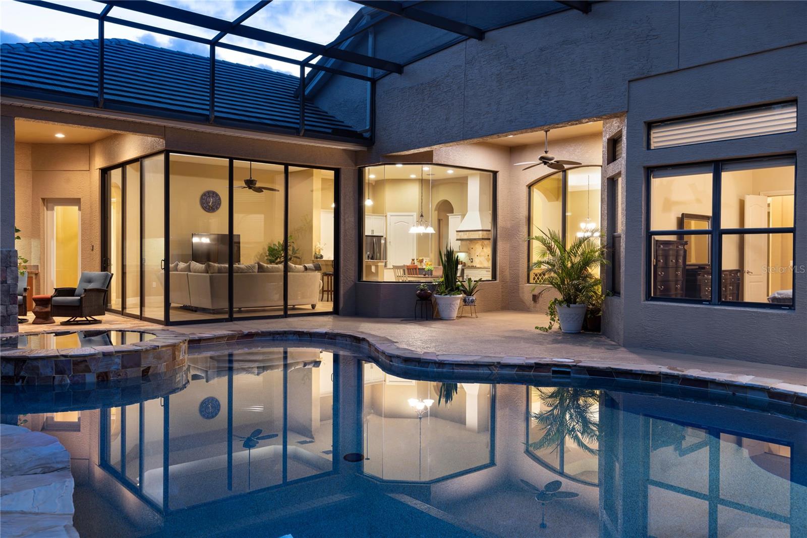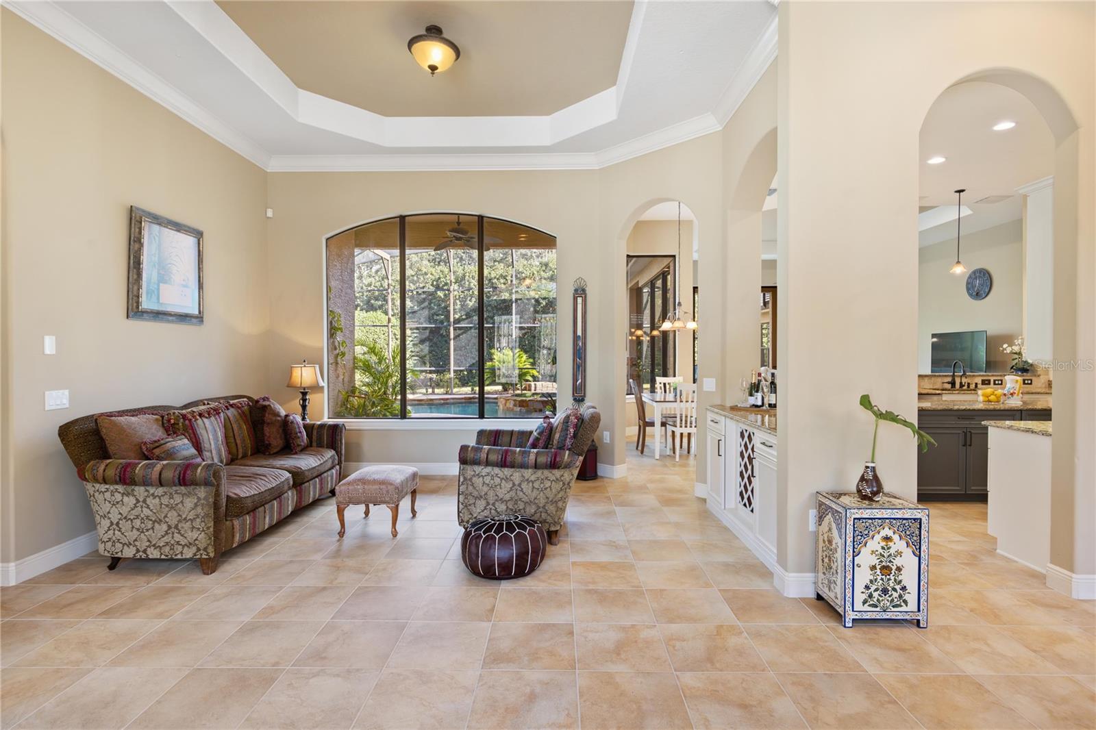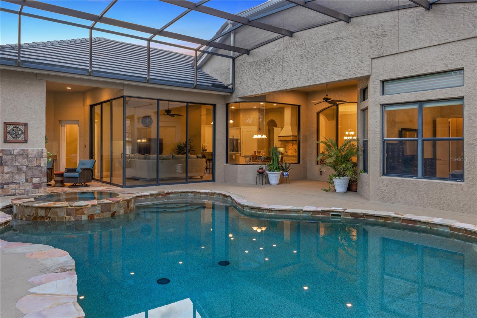 Welcome to Lake Forest, a resort-class gated community where residents enjoy the complementary amenities of a 55-acre lake with two fishing piers, a lakeside 10,000-square-foot clubhouse offering fitness, Junior Olympic-size swimming pool, beach volleyball, a park and playground, plus an incredible social committee bringing a calendar full of activities for all ages. This custom home spans 3,483 square feet of living space and features a three-way split plan including four bedrooms, an office, a game room/possible fifth bedroom, and expansive main living areas with tall ceilings and large windows. Upon entering the impressive lead-glass entry doors, the spacious and open floor plan expands across multiple spaces, all while introducing the alfresco lifestyle of the lanai, pool, and summer kitchen with fireplace. The spacious, light and bright kitchen unfolds into the family room featuring floor-to-ceiling pocket sliding doors inviting in the incredible stone-wrapped pool views and outdoor lifestyle this home was designed for. Just past the family room is the game room, which could easily become a guest suite thanks to direct bath access. The primary suite is an oasis all its own, enjoying tall ceilings and large windows, an impressive walk-in closet complete with a built-in storage system and a spacious bath featuring luxuries of a walk-in shower with multiple shower heads, a large soaking tub and dual vanities offering expansive granite counter space. Bedrooms two and three are on the opposite side of the home and share a Jack-and-Jill bath while bedroom four enjoys private access to the bath shared with the bonus room. The outdoor living spaces take advantage of privacy while maintaining direct views of the conservation area. The new owners will admire the wildlife beyond the screen enclosure including deer, hawks, wild turkey and more. Inside the screen enclosure are ample entertaining fun spots of a built-in summer kitchen, a gas fireplace, and of course the sparkling blue pool and spa to complete the desirable Florida lifestyle. An oversized three-car garage and manicured lot complete this incredible home. In addition to the 24-hour guarded gate, Lake Forest residents enjoy a newly updated clubhouse with fitness gym, Junior Olympic-size pool, tennis and pickleball courts, basketball, beach volleyball, 55-acre lake, lots of activities and neighborhood clubs for all ages. Ideally just moments from Interstate 4/State Road 417 and all Central Florida have to offer. Room Feature: Linen Closet In Bath (Bedroom 2). Room Feature: Linen Closet In Bath (Bedroom 3).