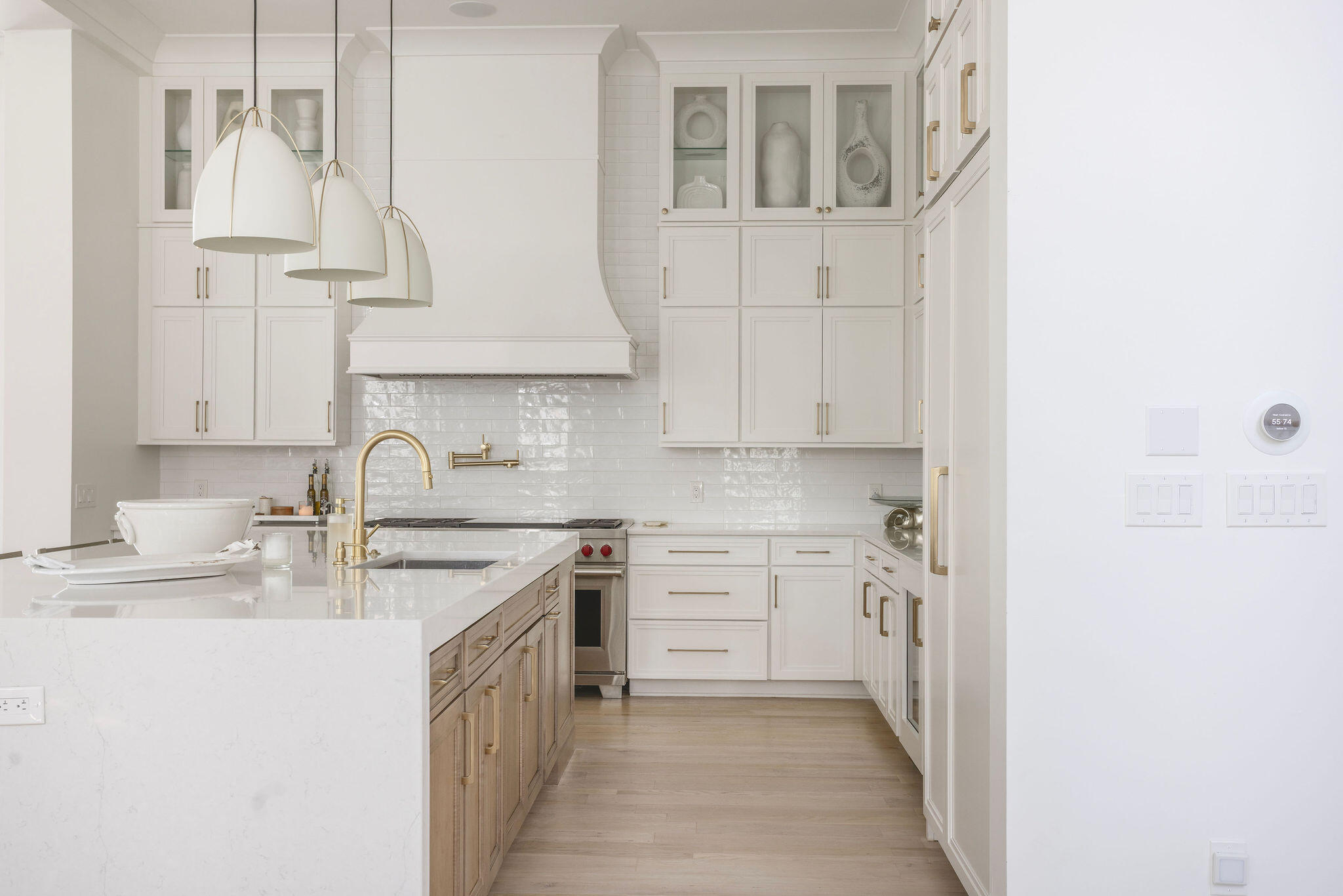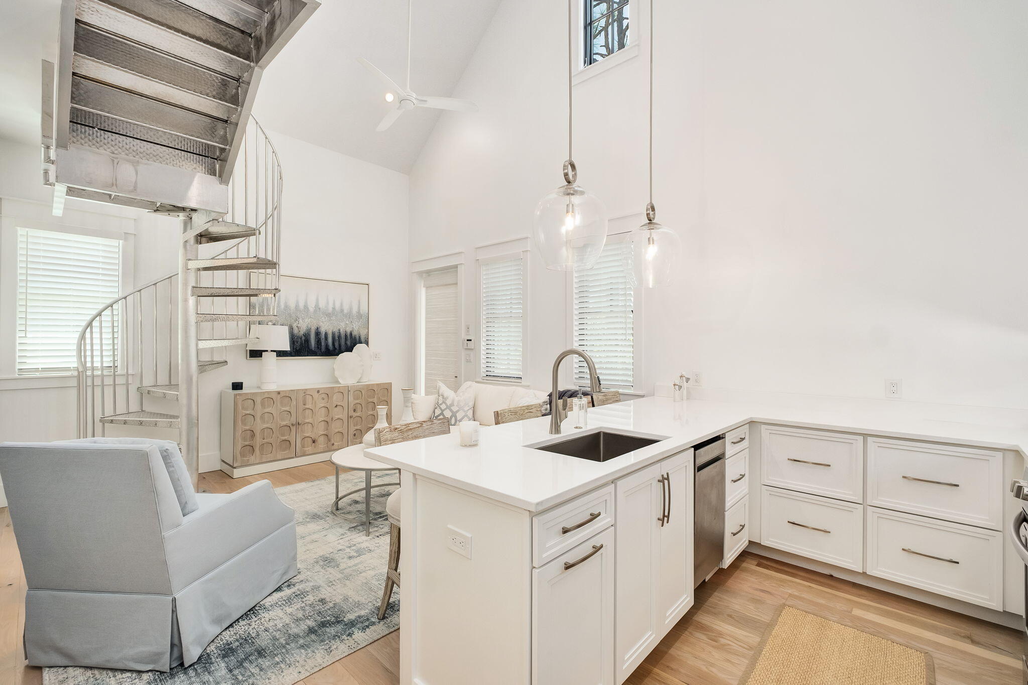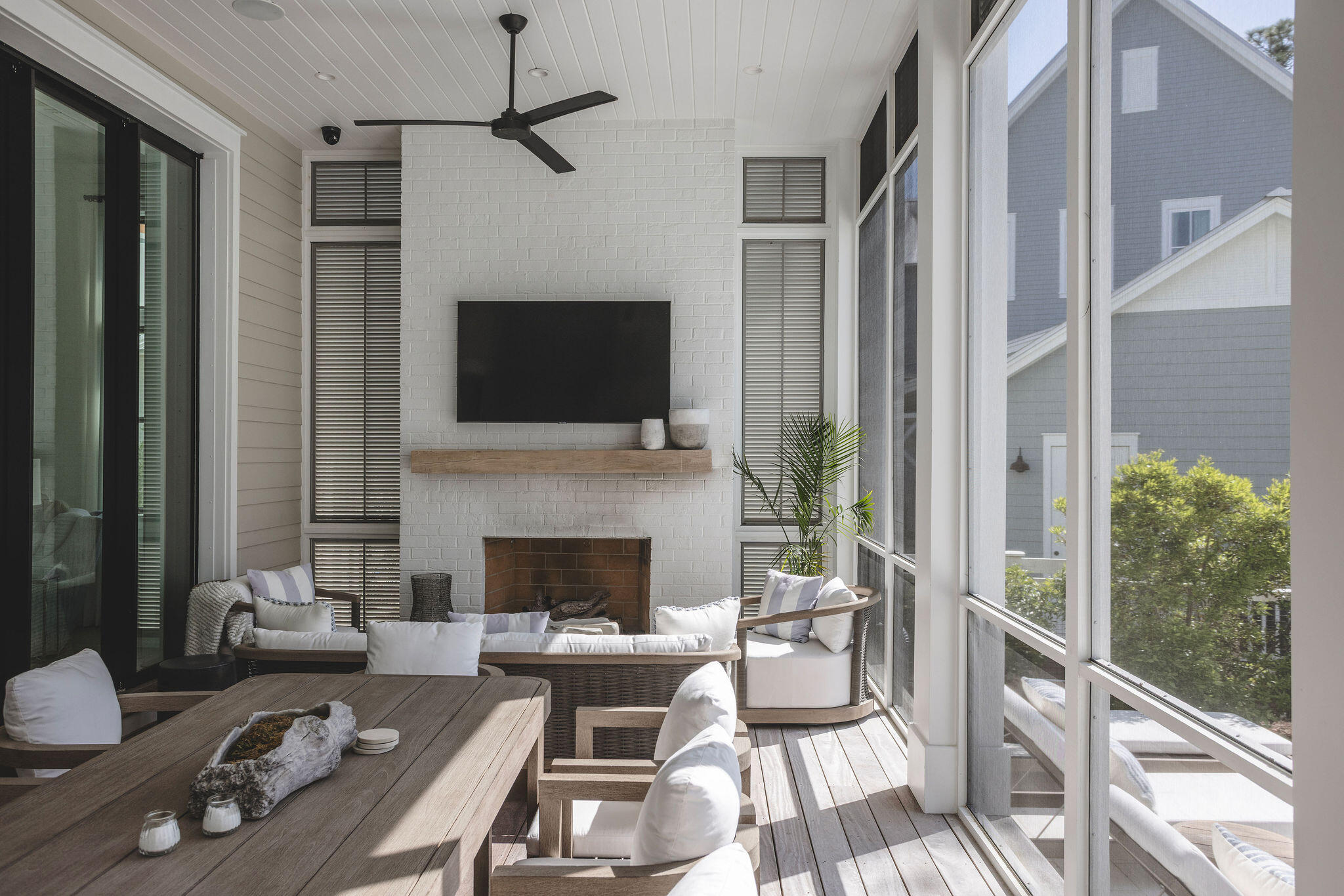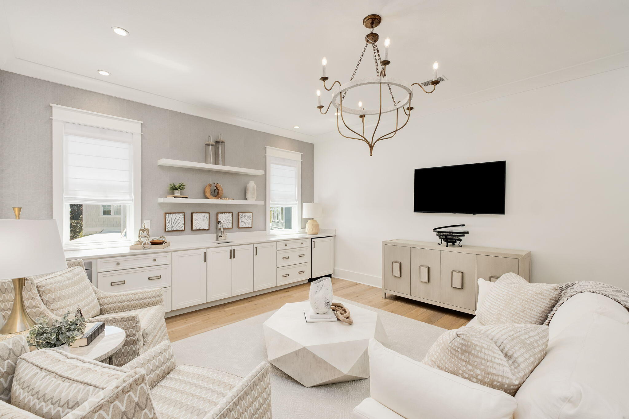In WaterColor, the most compelling homes rarely announce themselves. They reveal their intention gradually, through proportion, material, and the quiet confidence of thoughtful design. At 565 East Royal Fern, that restraint is immediately evident. Built by Borges Brooks Builders and designed by TS Adams, the residence reads less like a vacation home and more like a carefully composed coastal compound, where architecture, craftsmanship, and livability were considered in equal measure.The interiors are grounded in warmth and texture. Oak floors by Seashore Flooring run throughout, softening the scale of the home while complementing a restrained palette of whites and natural woods. Light moves easily across the living spaces, filtered through expansive openings and framed by subtle architectural details. Several furnishings were custom designed by the homeowner and executed by Amish craftsmen, introducing a quiet layer of authenticity that reinforces the home's tailored, intentional feel.The kitchen is both sculptural and functional, centered around a waterfall island that anchors the space. Dome pendants add a clean architectural focal point, while a 60-inch Wolf range and Liebherr refrigerator elevate the appliance package without disrupting the home's understated tone. In the carriage house, quartz countertops and coordinated finishes continue the same level of detail, ensuring the secondary living spaces feel fully integrated with the main residence.With eight bedrooms, including the private carriage house, the property lives as a true compound. The primary suite is positioned as a retreat, complete with a spa-style bathroom featuring a soaking tub, electric fireplace, dual closets, and direct access to a private patio. Guest accommodations are thoughtfully distributed, allowing for both privacy and flexibility when hosting extended family and visitors.Construction details further distinguish the home. The slab is elevated and foam insulated, a deliberate structural decision that enhances stability and helps prevent floor movement over time. Real stone in the downstairs guest bathroom reinforces the emphasis on authentic materials, while EPAY decking across the outdoor living areas was selected for long-term durability in the coastal environment.Outdoor spaces extend the architecture rather than compete with it. A resort-style pool and covered pavilion create layered gathering areas, allowing the home to transition naturally between quiet mornings and larger-scale entertaining.At 565 East Royal Fern, the result is not simply scale, but composition. A WaterColor residence defined by intention, craftsmanship, and a quieter, more enduring interpretation of coastal luxury.